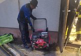 Die Grube wurde mittels Vakuumfass ausgepumpt. Ein Lüfter wurde gesetzt um Frischluft in die Güllegrube einzublasen. Ein Kamerad stieg mit Vollkörperanzug zu dem Tier ab, um es mit 2 Bandschlingen zu fixieren. Nach einigen Versuchen war es möglich das Tier anzuheben und mit vereinten Kräften aus der etwa 60x80cm großen Öffnung lebend zu heben.
